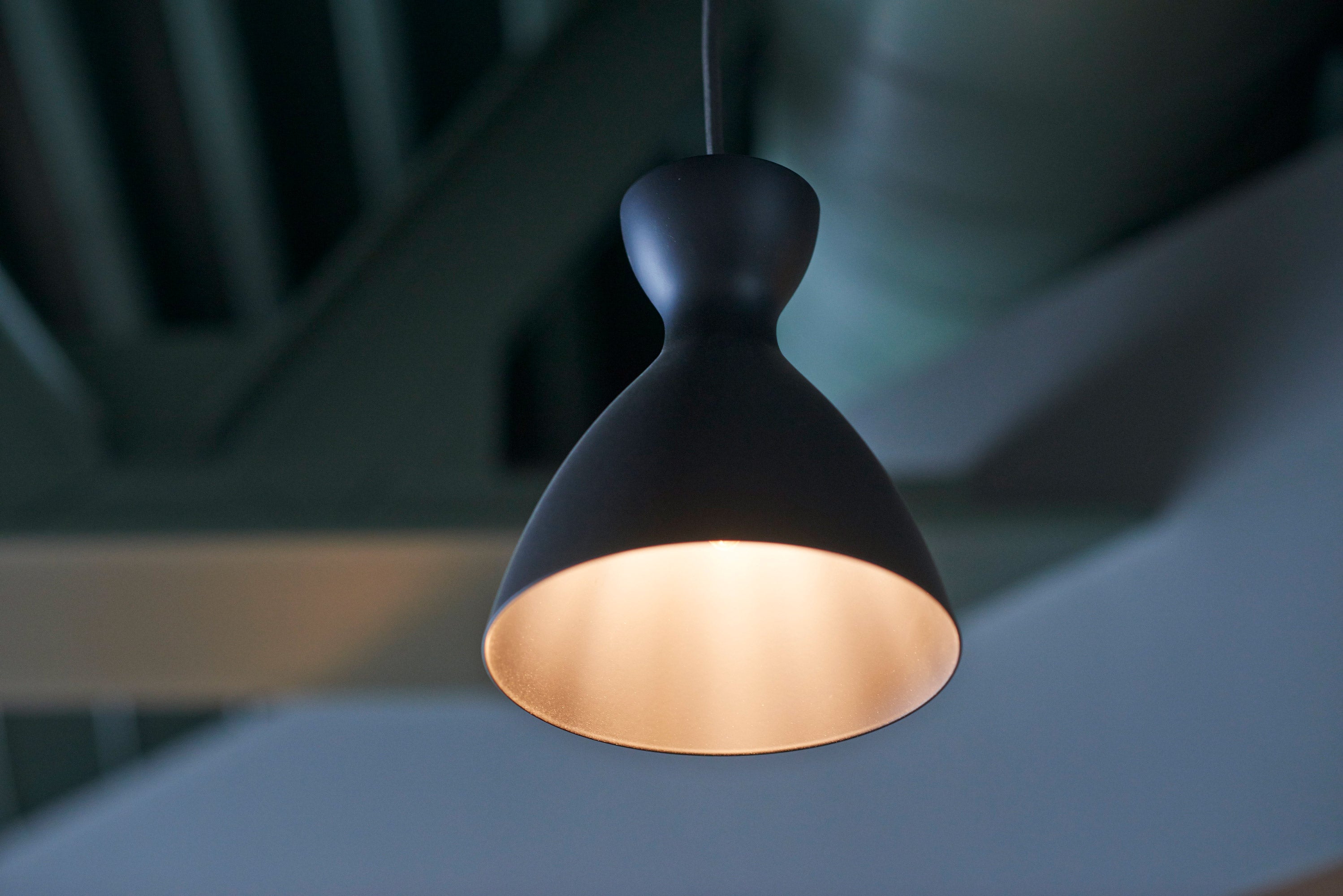 Pretty wide emits an open and direct kind of light; Pretty long focuses the light to a clean and narrow cone; Pretty small is the smaller, classic variety. The light effect of the lampshades may vary according to their finish: a mat white produces a soft light, while a mat black emits a brilliant variety.